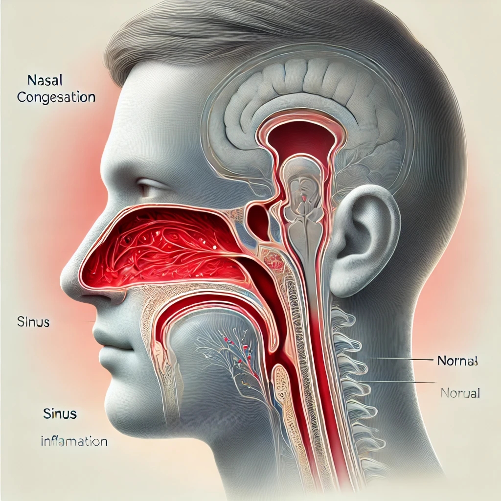 - 코막힘: 코 점막 부종으로 공기 통로가 좁아짐.