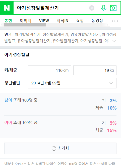 '아기성장발달계산기'의 네이버 통합검색 결과입니다.
