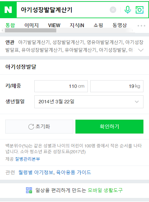 아기성장발달계산기 : 네이버 통합검색