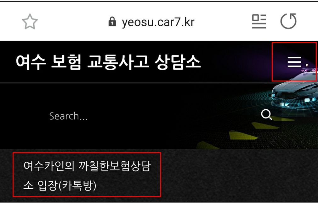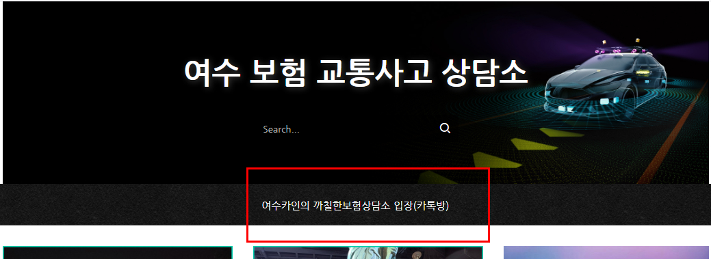 위의 사진에서 모바일 접속하신 분이나 PC 접속하신 분들이 이용할 수 있도록 간단한 안내를 해놓았습니다. 휴대폰으로 접속하여 보고계신 분들은 오른쪽 위의 줄 3개 모양을 누르면 아래에 여수카인의 까칠한보험상담 링크를 확인할 수 있습니다.